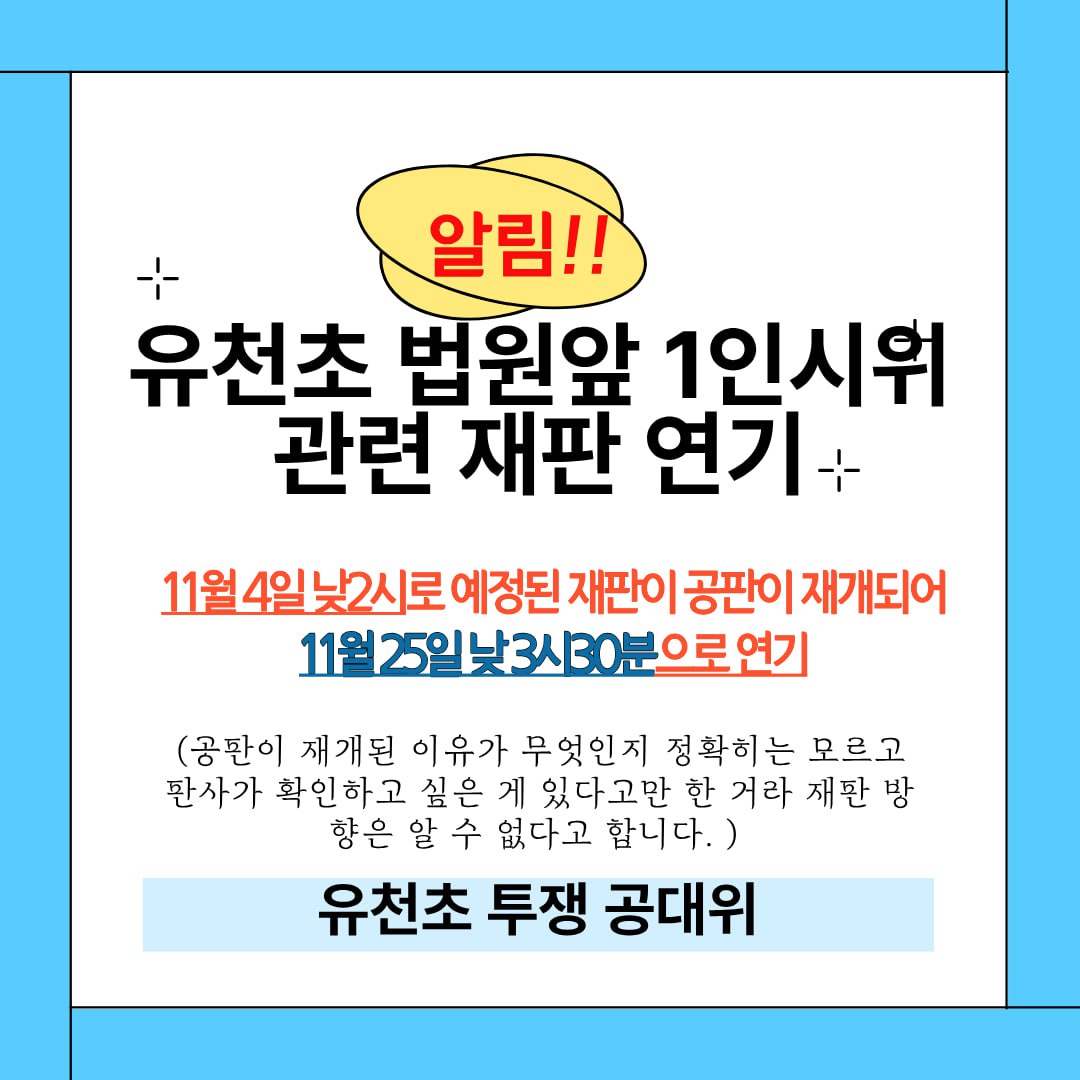 [알림] 유천초 법원 앞 1인 시위 선고재판 연기 안내