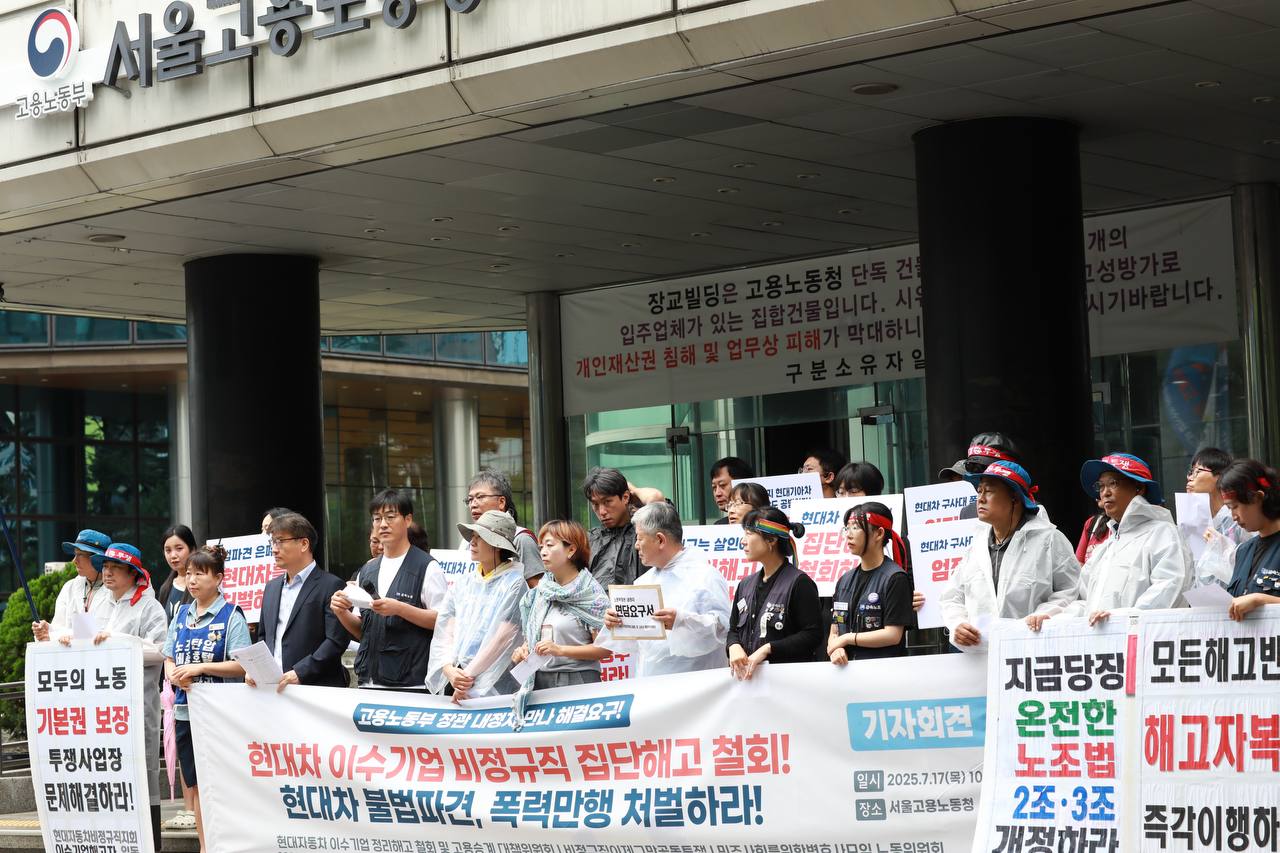 “현대차 이수기업 비정규직 집단해고 철회! 현대차 불법파견,폭력만행 처벌 촉구 비정규직 기자회견”