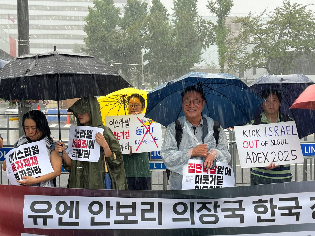 셋째, 한국 정부는 이스라엘에 포괄적인 무기금수조치를 시행하라. 이탈리아, 일본, 스페인, 콜롬비아, 네덜란드 등의 국가는 이미 이스라엘과의 무기 거래를 일부 중단하거나 완전히 중단했다. 그러나 한국은 이스라엘과 군사협력을 확대하고, 2023년 10월 이후에도 이스라엘에 지속적으로 무기를 수출하고 있다. 유엔 통계에 따르면, 2023년 10월부터 2024년 7월까지 한국이 이스라엘에 수출한 무기는 최소 185만 3천 달러 (약 25억 6천 만 원)에 달한다. 한국이 이스라엘의 무장을 돕고 집단학살에 공모하고 있다는 뜻이다. 지금 즉각 이스라엘에 포괄적인 무기금수조치를 시행해야 한다. 더불어 유엔 안보리 의장국으로서 안보리에서 포괄적무기금수조치 결의안을 발의하고 채택해야 한다.