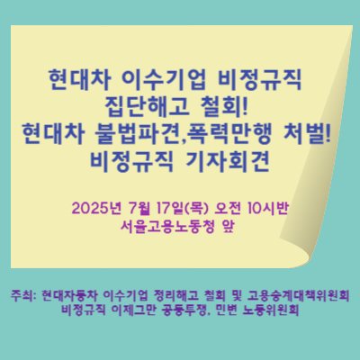 현대차 불법파견,폭력만행 처벌하라! 비정규직 기자회견”